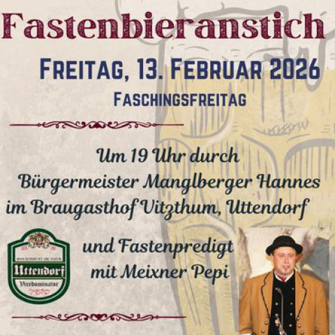 Jährlich findet der traditionelle Fastenbieranstich am ersten Freitag nach Aschermittwoch mit Fastenpredigt und musikalischer Umrahmung im Braugasthof Vitzthum in Helpfau-Uttendorf statt. Das Fastenbier "Vizedominator" kann während der gesamten Fastenzeit frisch vom Fass im Braugasthof genossen werden - und für Zuhause gibt es das Fastenbier auch in Flaschen.