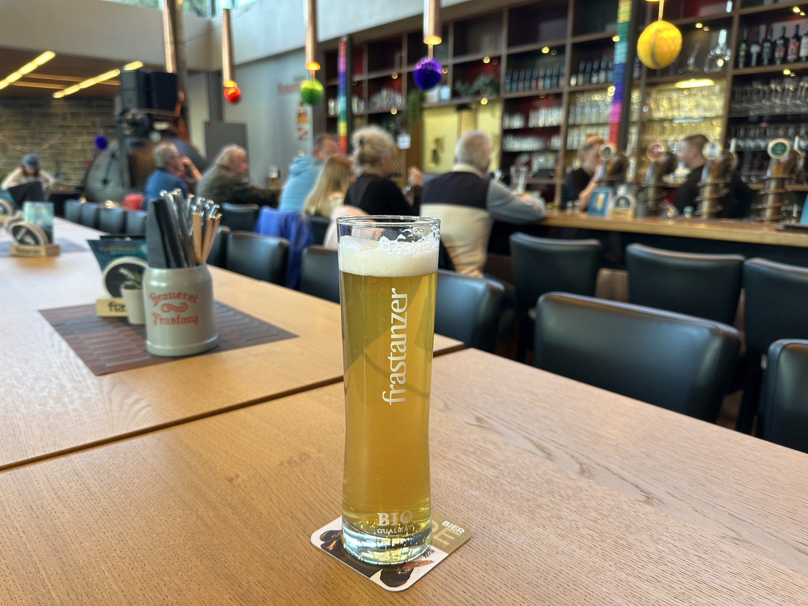 Diese Braugaststätte ist seit Jahrzehnten das Aushängeschild der Frastanzer Brauerei — im Herbst 2024 neu übernommen, strahlt sie spürbar frischen Schwung aus und ist rasch zum Treffpunkt der Vorarlberger Bierexperten geworden. Hier gibt es Stammtische der BierIG, aber auch das Produktionsteam der Frastanzer Brauerei kommt immer wieder auf ein Bier vorbei. Zu Essen gibt es deftige Brauhaus-Kost (unter anderem ein Biergulasch, in dem das Frastanzer Bio-Bier verarbeitet wird), aber auch eine Auswahl vegetarischer Speisen. Legendär ist die lange Bar und die Bier-Terrasse.