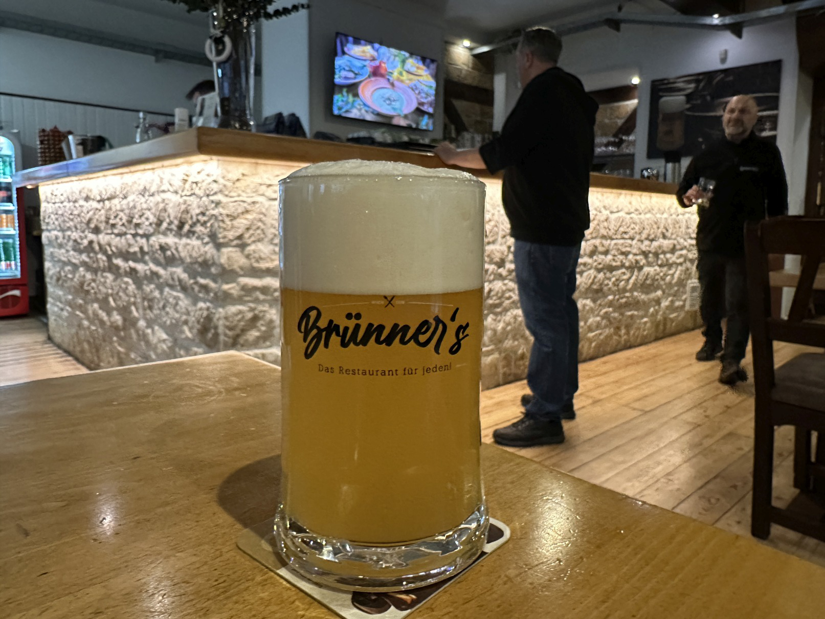 Viele Jahre lang war dieser Betrieb als reines Bierlokal profiliert, an der Bar erinnert noch das Motto daran: "Trinken ist ein Bedürfnis, Bier eine Kultur!". Inzwischen hat sich das Profil in Richtung "Das Restaurant für jeden" weiterentwickelt, vieles von der bierigen Deko ist verschwunden. Bierpflege und Service sind weiterhin bemerkenswert, die Familienfreundlichkeit ist legendär. 120 Sitzplätze im Lokal (Rollstuhl gerecht), Garten: 100