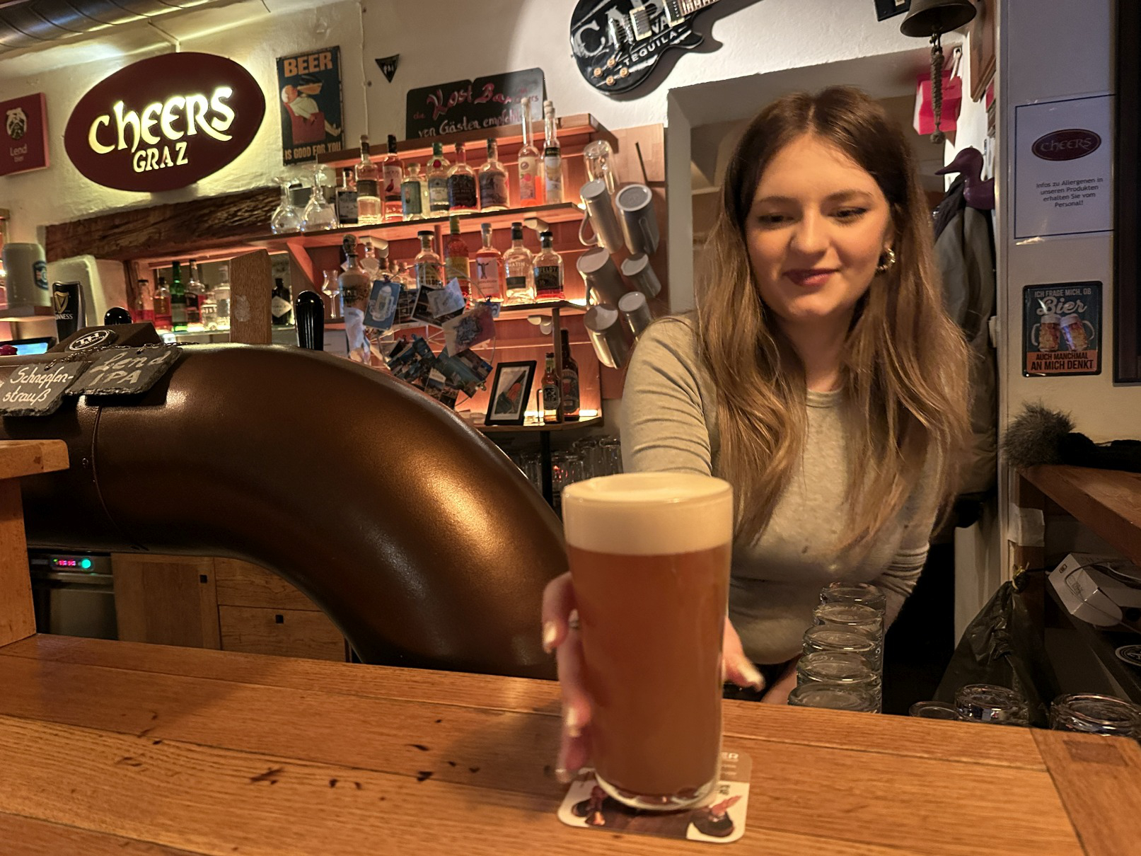 Dieses gemütlich-rustikal eingerichtete kleine Ecklokal in der Volksgartenstraße bietet neben einer kleinen, fein sortierten Bier-Bibliothek (unter anderem die klassischen Bücher des 2007 verstorbenen Beer-Hunters Michael Jackson!) eine große Auswahl mit steirischem Craftbier-Schwerpunkt — unter anderem das selbst gebraute Lendbier. Die Jury des Bierguide war schon 2014 von diesem Konzept so angetan, dass Cheers zum steirischen Bierlokal des Jahres gewählt wurde. Die Verwandtschaftsverhältnisse der Bierstile werden auf einer wandfüllenden Landkarte dargestellt — wobei „Cheers“ im Zentrum steht. Zur bierigen Stimmung trägt auch bei, dass etwa die Kleiderhaken aus Zapfhähnen gestaltet sind. Passend zum Bier gibt es hausgemachtes Gulasch, veganes Chili, Veggie-Semmel, diverse Würstel und Nachos. All das immer von einer freundlichen Bedienung angeboten. Jeden Dienstag Pub-Quiz. 40 Plätze im Lokal, 10 an der Bar und 48 im Gastgarten, der je nach Wetter ganzjährig geöffnet ist.