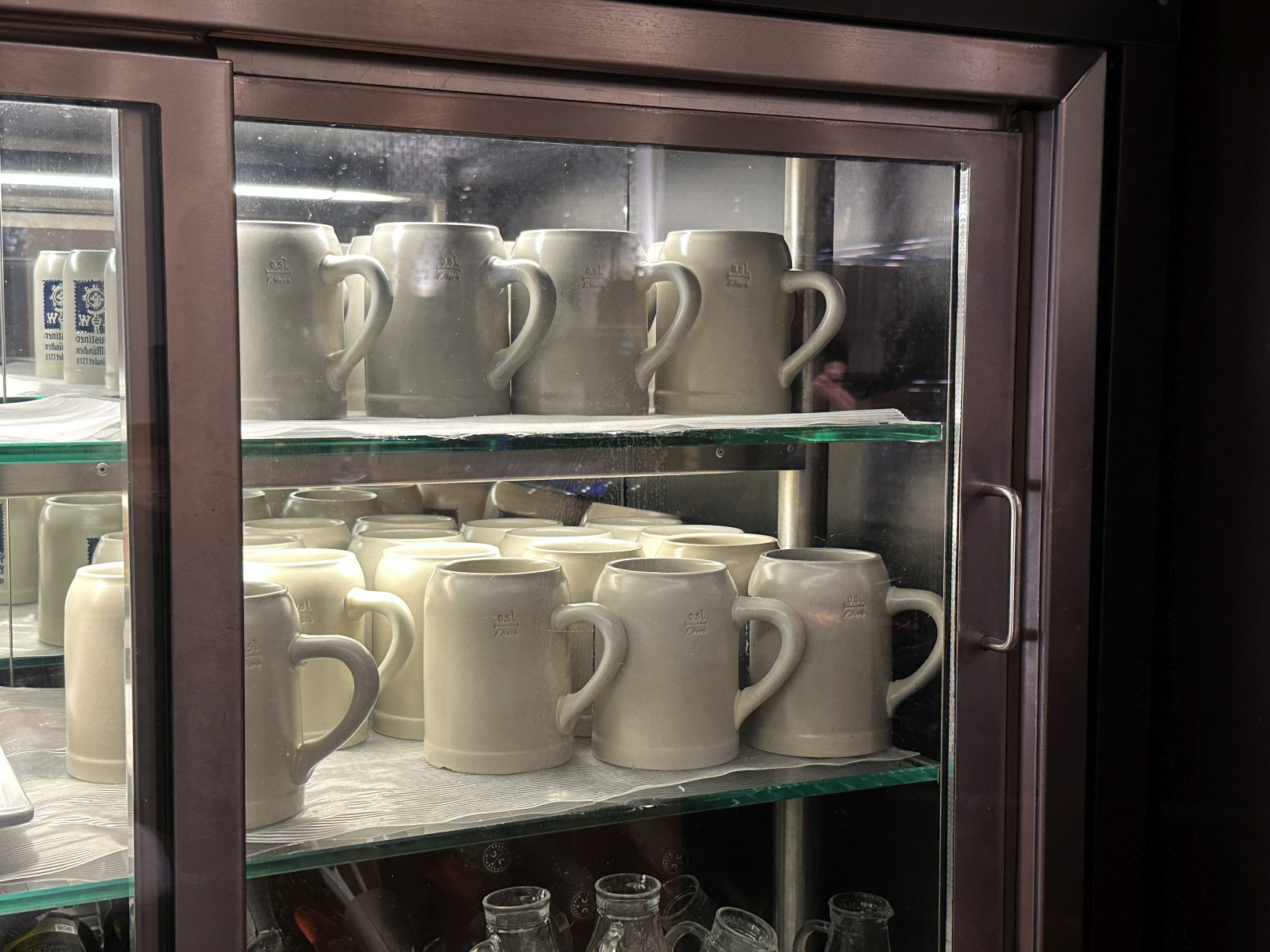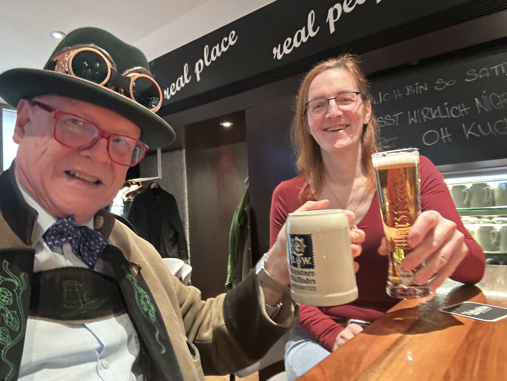 Am Götzner Garnmarkt tritt das Hubers als Mischform aus Café, Restaurant und Bar auf, die sich vom frühen Vormittag bis in die Nacht hinein an ein durchmischtes Publikum richtet. Die große Bar ist das zentrale Gestaltungselement, hier wird sehr bemüht gezapft. Als bierige Besonderheit ist zu erwähnen, dass man beim Augustiner wählen kann, ob man es lieber aus dem Glas oder dem Tonkrug haben will - der Tonkrug ist klar zu empfehlen, denn der kommt aus dem Kühlschrank und hält die Temperatur des Bieres gut. 60 Plätze im Lokal, 20 an der Bar, 30 im Vorgarten.