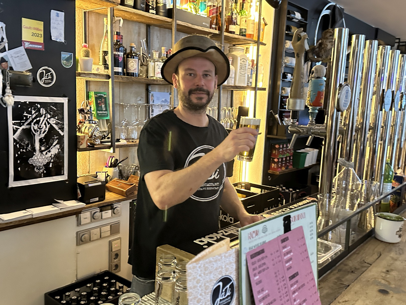 Das JaTi ist Söldens Craftbier-Bar - eingerichtet in einer ehemaligen Schusterwerkstätte, aus der noch etliche Versatzstücke als Dekoration erhalten geblieben sind. Der Name setzt sich aus den jeweils ersten beiden Buchstaben der Vornamen der Söhne des Betreibers, Jack und Tim zusammen - aber das nur nebenbei. Die Hauptsache hier ist natürlich das Bier, entsprechend umfangreich und gut kommentiert ist die Bierkarte, auch vom Personal bekommt man treffende Beschreibungen und Empfehlungen zu den Bieren. Das JaTi ist das einzige Restaurant in Sölden und Umgebung, das Bowl´s, Veganes, Glutenfreies und Biobeef-Burger anbietet. 50 Plätze in drei Räumen, 14 an der Bar.