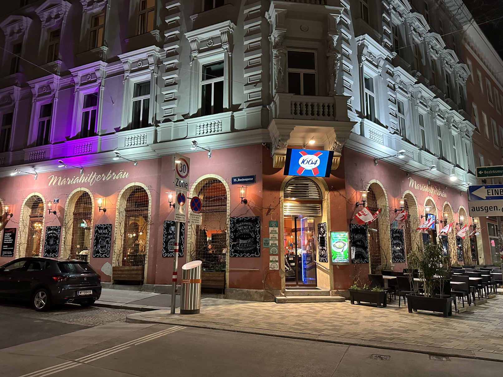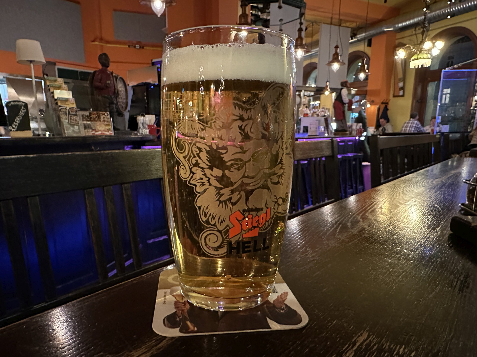 2026 renoviertes Bierlokal, das eines der Aushängeschilder von Stiegl in der Bundeshauptstadt darstellt – und auf seine lange Geschichte hinweist: Zwar war an dieser Adresse nie eine Brauerei (in der Umgebung dagegen gleich mehrere), doch seit 1870 wurden hier sehr unterschiedliche Lokaltypen betrieben – die Lokalchronik berichtet auch vom verbotenen Stoß-Spiel im seinerzeitigen Café Central. Und davon, dass hier seit 2001 ein Bierausschank ist. Wenn man eintritt, sieht man zuerst, dass sich über der Bar eine janusköpfige Figur auf einer Empore dreht. Auffallend ist die freundliche und kompetente Bedienung, die kundig über das Angebot informiert. Wer sich beim Bier durchkosten will, kann ein „österreichisches Bier-Quintett“ bestellen. Hinsichtlich der Speisen heißt das Wiener Küche und saisonale, frisch zubereitete Spezialitäten, Jeden Donnerstag gibt es ofenfrischen Schweinsbraten. Ca. 150 Sitzplätze im Lokal, 12 an der Bar, 70 Sitzplätze im Schanigarten.