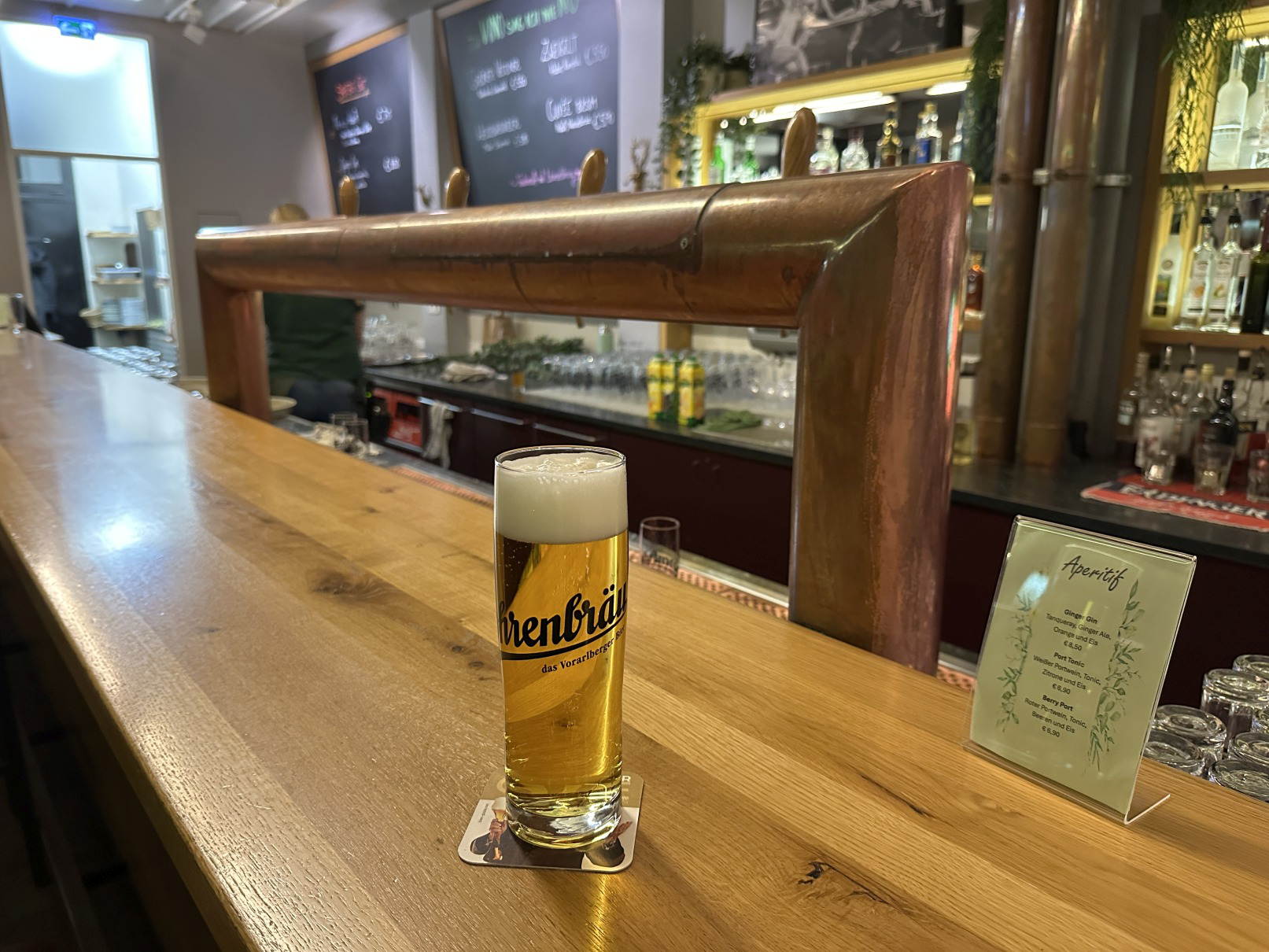 Es inzwischen Jahrzehnte her, dass in diesem ehemaligen Druckereigebäude eine Gasthausbrauerei betrieben wurde: Sie verschaffte dem "Bierlokal" im Jahr 2001 die Auszeichnung als Vorarlbergs Bierlokal des Jahres in diesem Bierguide. Aber die eigene Bierproduktion ist lange Geschichte - und der Name "Bierlokal" seit 2025. Im Juli 2025 wurde der Betrieb von den langjährigen Mitarbeitern Celine und Marco Büsel übernommen und in ein neues Konzept mit feiner, aber unkompliziert präsentierter Küche übergeführt. Jeden Samstag Mittag gibt es den legendären Schweinebraten in Biersauce mit Sauerkraut und Knödel. Man kann auch einfach auf ein Bier an die Bar kommen. Auf die Frage, was es für Bier gibt, bekommt man die strenge Antwort: "Mohren, wir sind in Dornbirn". Immerhin gut gezapft. 160 Plätze im Lokal, 34 an der Bar, 100 im Garten.