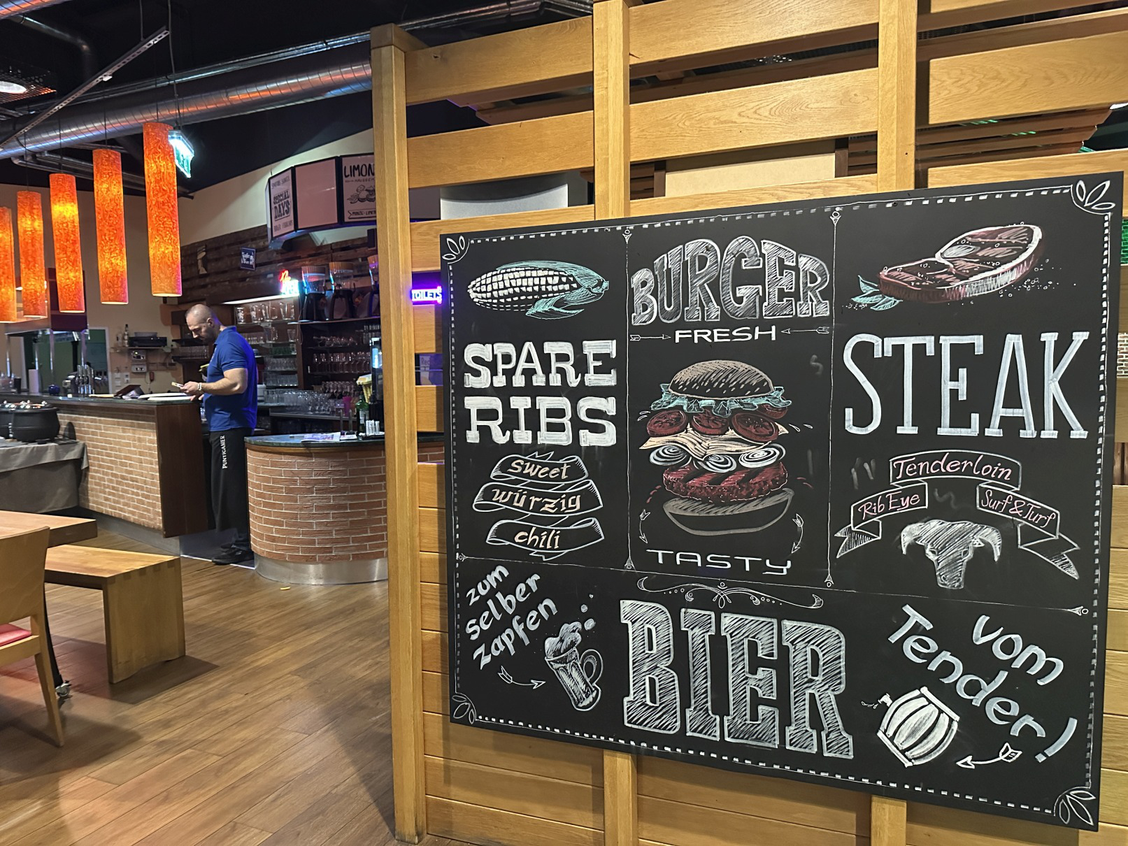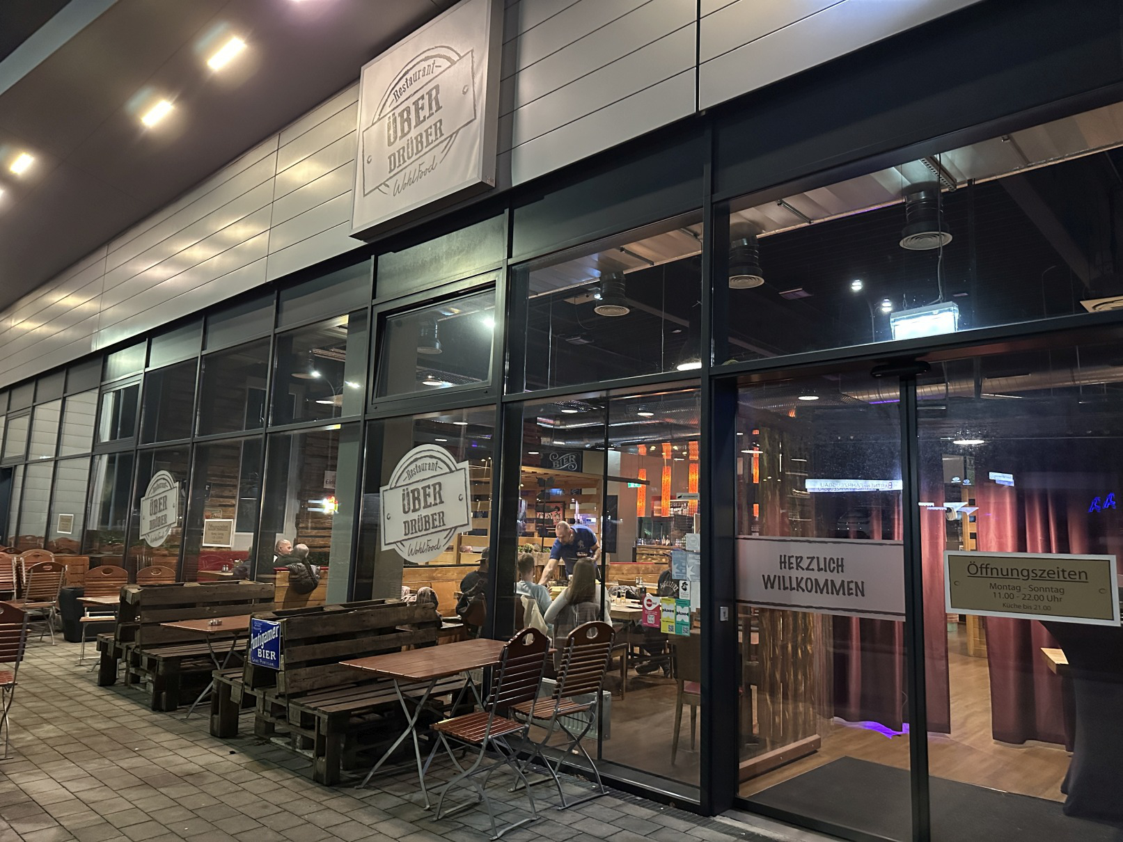 Zwischen Büros und Spielhalle lädt das Überdrüber in ein großzügiges, holzbetontes Ambiente mit Western‑Anklängen. Im Mittelpunkt stehen XXL‑Spareribs, Steaks und Schnitzel - man nennt es SoulFood oder auch WohlFood; die Zutaten kommen aus regionaler Produktion. Eine klassische Schank zum entspannten Zusammenstehen fehlt, der Betrieb funktioniert als großes Wohlfühl‑Restaurant - und ist damit nicht zuletzt für Familien attraktiv. Eine solide Adresse, um zu gegrilltem Fleisch ein frisch gezapftes Glas zu trinken - Bierpflege (Thalheim Bier vom Fass!) und Service sind auf hohem Standard.